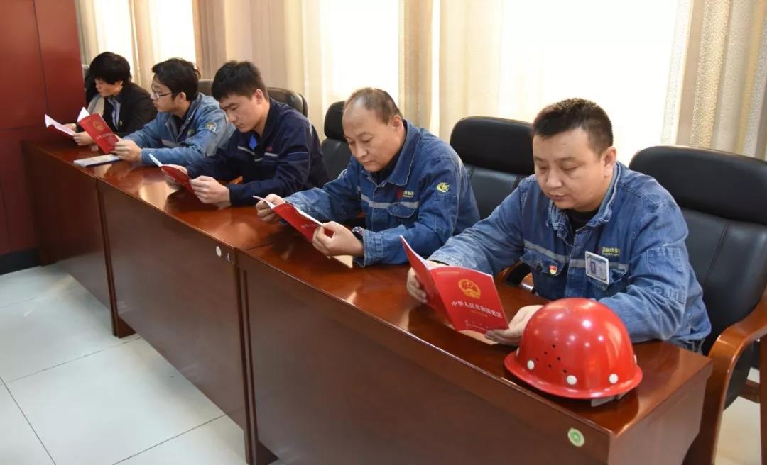 2018年12月4日是我國第五個憲法宣傳日,為進一步維護憲法的權威性,提高公司全員學習憲法的積極性,上午九點,集團黨委組織裕華、文豐廠區各部門黨員干部在文豐辦公樓一樓會議室舉行了學習憲法宣誓活動。集團黨委副書記、紀委書記王起增參加,宣教中心主任、紀委副書記孫紅明主持了本次活動。
