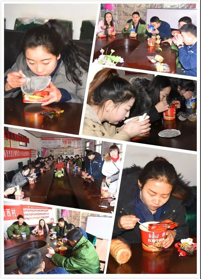 1月11日上午十點,藝術團到達康二城鎮康西村劇場。大家既是演員又是劇務,自己動手搭好舞臺。中午時分,村委會給送來了熱水,工會領導給每個演員準備了泡面,火腿腸,兩個雞蛋,這就是他們的午餐,決不給村里添一點麻煩。瞧,誰吃得最香?