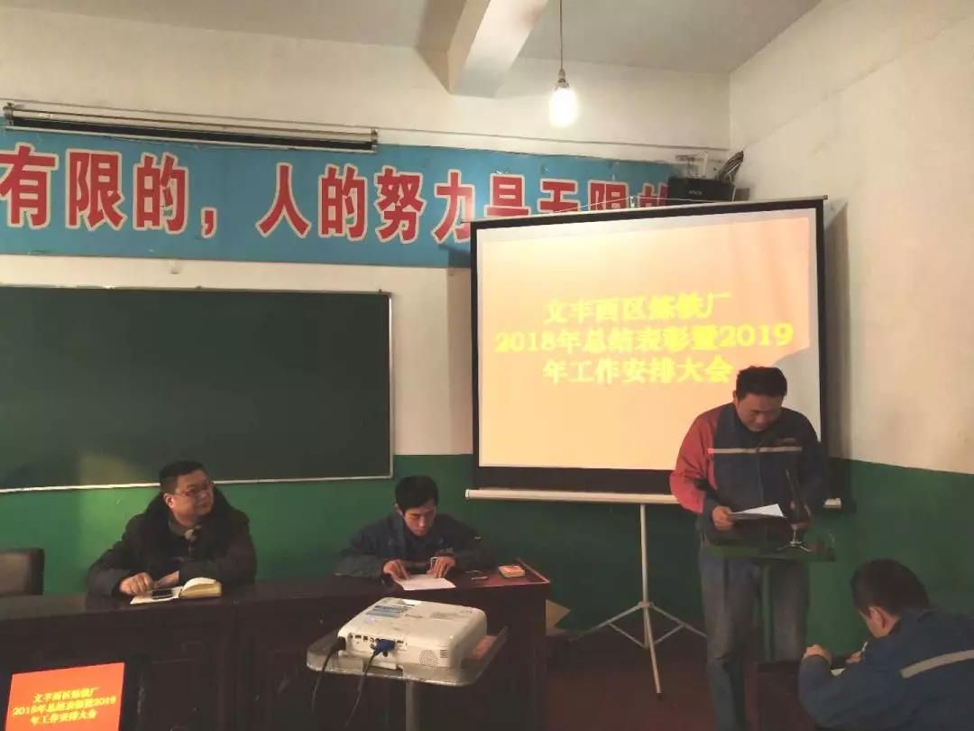 首先由生產科長史增明總結2018年各項工作任務及質量指標完成情況,總結了西區煉鐵廠全體員工用辛勤和汗水默默書寫的點滴成就!