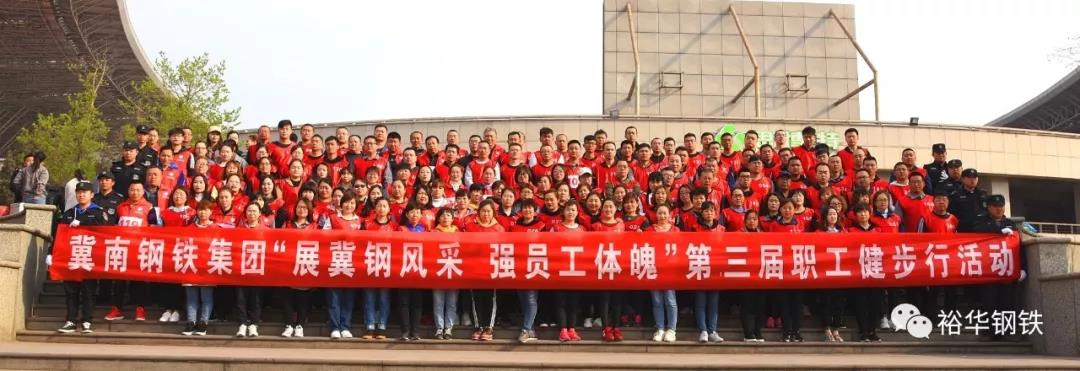 為進一步貫徹落實《全民健身計劃2016--2020》,提高員工身體素質,展示冀鋼人良好的精神風貌和深厚的企業文化,3月29日上午,陽光明媚,春意盎然,冀南鋼鐵集團在市體育場隆重舉辦第三屆“展冀鋼風采,強員工體魄”職工健步行活動。集團領導王起增、張超、孫紅明、孫榮華、智軍、鄭俊峰、趙軍華等出席,文豐、裕華各廠(部室)近200名員工參加了本次健步行活動。