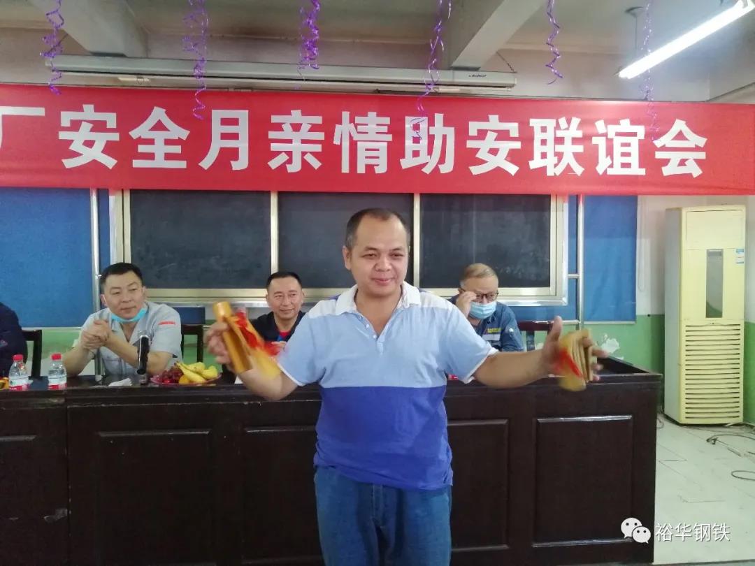 首先由廠長譚二慶致歡迎詞:2020年6月是全國第19個安全生產月。安全,離不開一線員工的精心操作,離不開特種作業人員對設備的認真點巡檢,離不開酷暑天氣管理人員的周密呵護,更離不開家屬在愛人耳邊的綿綿細語,殷殷叮嚀。安全,也是企業發展壯大的永恒主題。舉辦聯誼會就是希望家屬們通過安全活動,走進車間,走進崗位,識別安全風險,并牢記心中時刻提醒。祝愿我們的職工,每天高高興興上班來,平平安安回家去。